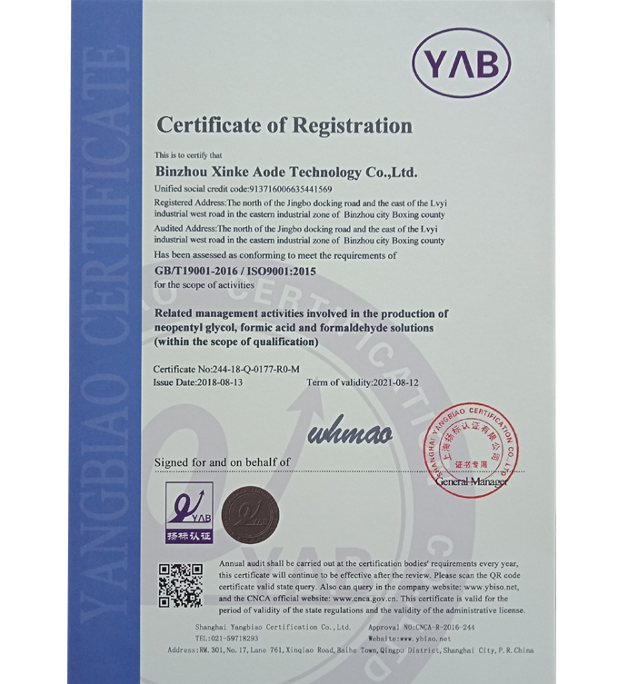 濱州市新科奧德科技有限公司成立于2007年,幾年來企業規模不斷擴大,經濟效益與社會效益不斷提高,實現利稅連年遞增,生產經營由過去單一產品的開發模式向多元化模式發展,公司坐落于黃河三角洲美麗的董永故里,呂劇起源地——山東博興,是新戊二醇、甲酸...